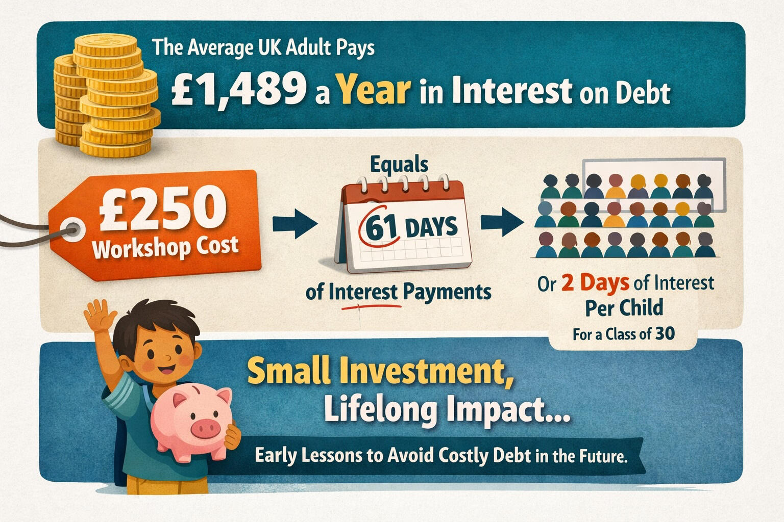 The average UK adult pays £1,489 every year in interest on debt. Quietly losing money year after year (The Money Charity, 2024).This is not just a workshop, it is a small intervention at the point it matters most, before costly habits take hold and become lifelong burdens.